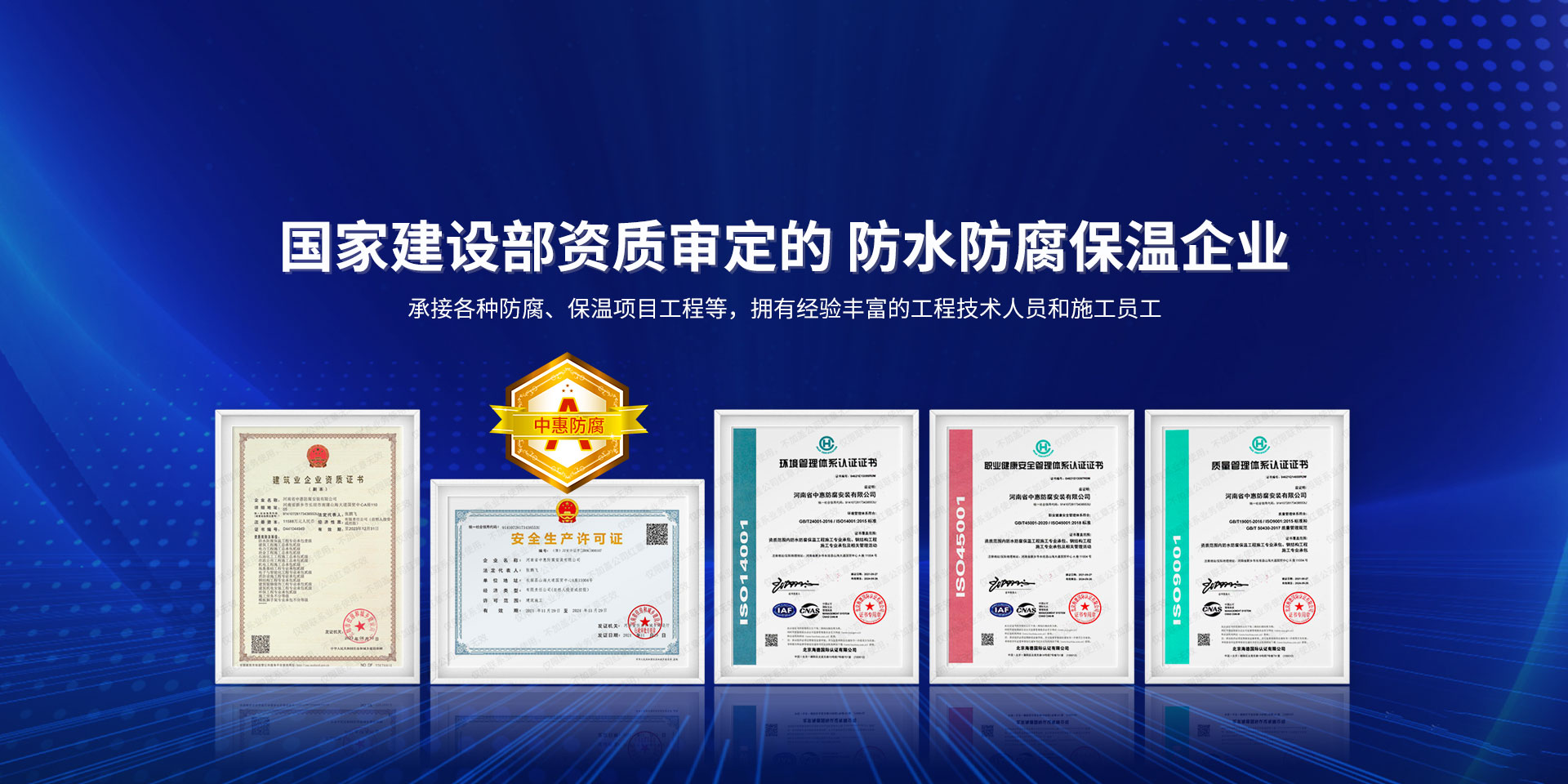 公司經營范圍:防水防腐保溫工程;消防設施工程;建筑裝修裝飾工程;建筑機電安裝工程;電力工程;建筑工程;石油化工工程;工業清洗工程;油罐清洗工程;鋼結構工程;環保工程;模板腳手架工程;電纜防火封堵、防污閃噴涂、外墻外保溫工程;各類施工勞務作業;設備維修、船舶鉚焊、涂裝;電力工程材料、建材、防水材料、防火材料、防腐保溫材料銷售,并相繼通過了GB/T19001-2008idtISO9001:2008GB/T50430-2007質量管理體系認證證書。GB/T24001-2004idtISO14001:2004環境管理體系認證證書。GB/T28001-2011idtOHSAS18001:2007職業健康安全管理體系認證證書。公司是中國防腐蝕于防護協會、中國施工企業管理協會、電力協會和中國鋼結構防水協會會員單位。 公司的經營業務涵蓋了石油、化工、電力、冶金、煤炭、船舶、國防、燃氣、水利、環保、交通運輸、航空及國防軍工和輕紡市政等行業的防腐保溫絕熱設備。鋼結構安裝、防火、防水、金屬噴鍍、聚脲噴繪、陰極保護、防滲透堵漏、玻璃鋼及各種磚版材料襯里、橡膠襯里、煙氣硫和耐酸溶劑腐蝕等工程施工。公司連續十年榮獲“省市先進施工企業”“安全生產先進單位”“重合同,守信用企業”和“AA***資質企業”的稱號。2000年被命名為市級文明單位,2002年被國家工商行政管理局命名為“重合同,守信用的企業”、被中國工業防腐蝕技術協會命名為“防腐蝕企業,能源節約及環境保護領域有豐富的經驗和***的業績。工程一次交驗合格率100%。其中攀枝花鋼鐵公司煉鐵廠四號高爐及熱風爐防腐工程、上海寶鋼公司煤氣柜防腐工程、撫順石油一廠裝置防腐項目、齊魯石化公司稀烴廠高塔防腐工程、吉林化學工業公司煉油廠油罐防腐工程、天津石化熱電廠六號爐頂棚聯絡管保溫工程、大慶油田(太倉)力神泵業工程、中國化學工程第十一建設工程、中原油田勘探局工程、中國石化銷售有限公司華北分部、魯皖輸油管道工程、貴州開磷息烽合成氨工程、陜西黃陵煤化工程、中國石油天然氣西部管道塔里木輸油工程、邯鋼集團邯寶鋼鐵公司煉鐵工程、德州供電工程、吉寶(南通)船廠工程,偃師華潤熱力工程、鄭州熱力總公司。 河南省中惠防腐安裝有限公司愿以豐富的施工經驗,***的技術,***的設備,***的管理,***的服務,竭誠為國內外廣大的用戶提供***滿意、******的工程作品。 我公司愿與國內外同仁一道,團結協作,共同推進防腐蝕行業發展! 公司地址:河南省長垣縣建設路北段360號 固定電話:0373-8866488 郵編:453400 網址:http://www_zhff_com_cn.s0795.com